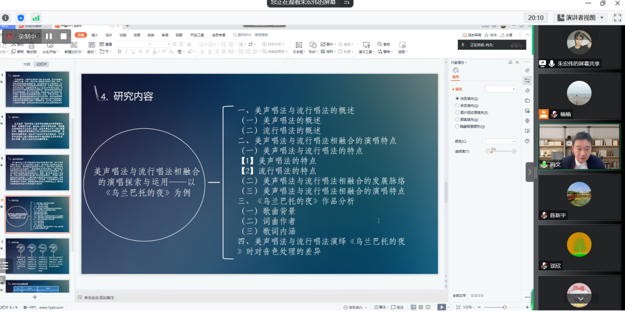 1月9日,学院2021级硕士研究生开题及中期考核报告会在腾讯会议顺利举行,报告会共两场,学院特邀南京师范大学向文教授为答辩委员会主席,南京师范大学音乐教育学科系主任谈欣副教授为专家委员。学院全体硕导和研究生参会。
