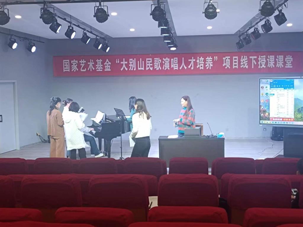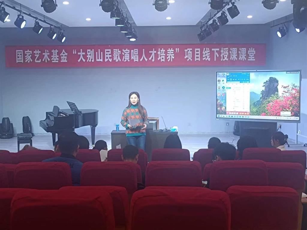 3月15日上午,国家艺术基金“大别山民歌演唱人才培养”线下授课课堂在公司2026年国际足联世界杯一楼八音讲堂火热进行中。信阳民歌歌唱家,大别山民歌传承人,信阳市民歌研究会副主席李鸣凤应公司邀,以《豫南小调(一)》为题进行线下教学。