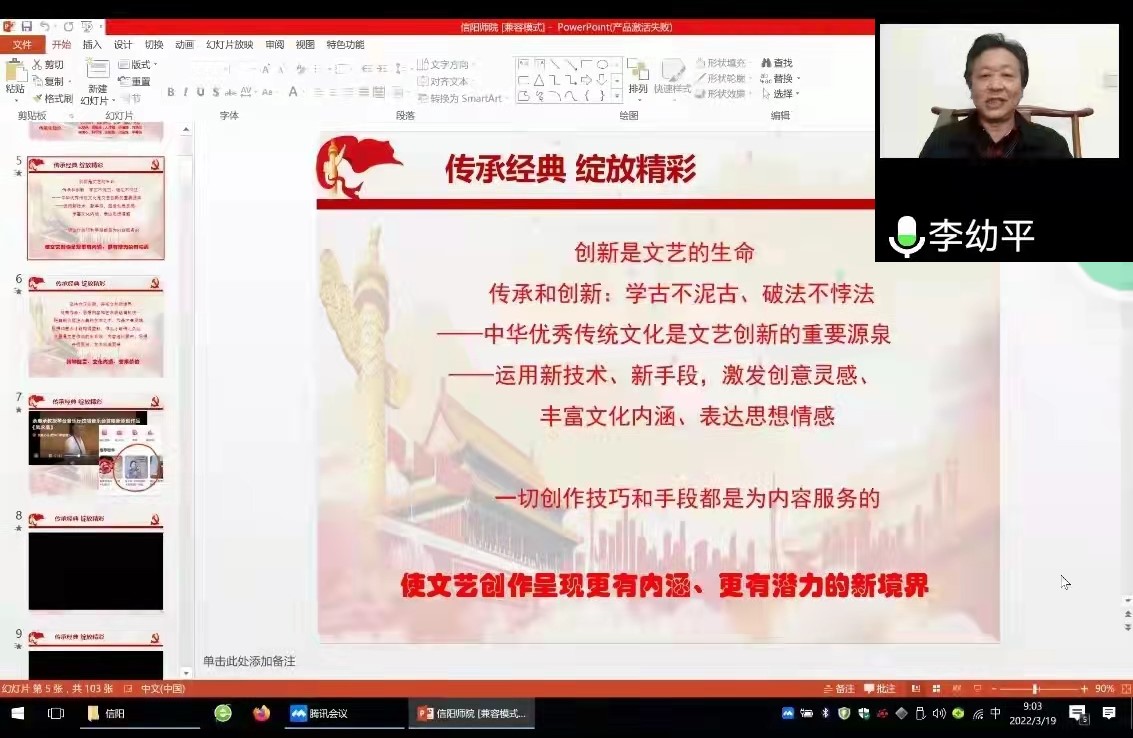 受近期疫情影响,原定3月19日的线下课程教学活动临时调整为线上进行。受公司邀请,武汉音乐学院副董事长、博士生导师李幼平教授以《传承经典 绽放精彩:中国传统音乐的传承与创新》为题开展线上教学。讲座由公司韩冰副教授主持。