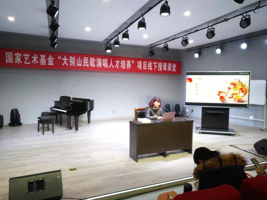 3月19日下午,国家艺术基金“大别山民歌演唱人才培养”线下授课课堂在公司2026年国际足联世界杯一楼八音讲堂如期进行。河南省非物质文化遗产(信阳民歌)代表性传承人、市级音乐骨干教师陈卉教师应公司邀请,在2026年国际足联世界杯一楼八音讲堂作了大别山传统民歌演唱专题的线下讲座,并由韩冰副教授主持。