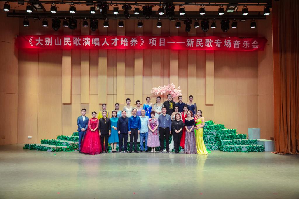 本场新民歌音乐会的成功举办离不开各位专家的锦囊相助,以及学员们的共同努力。即使是在近期疫情如此严重的情况下,各位专家仍采用线上和线下授课相结合的方式坚持授课,以史论课程体系与地域特色的演唱实践紧密相结合,使学员们从单一的演唱专业能力与声乐技术层面的学习,到传统音乐审美意识和音乐理论视野等多维度的全面提升。这也充分体现了习近平总书记所提出的“坚守信念、胸怀全局、团结奋进、勇当前锋”的大别山精神,也是本次项目举办的意义所在。通过本项目的开展与实施培养大别山民歌演唱人才,并以此契机让大别山精神和音乐文化传承发扬。