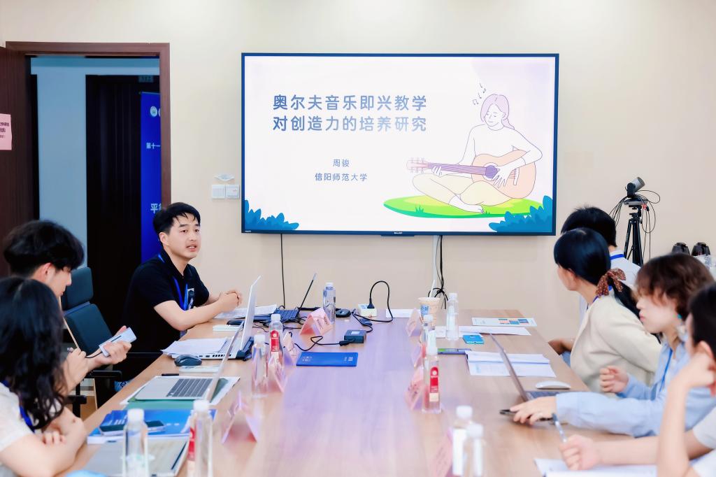 为促进跨学科、跨领域的交流与合作,打破传统创新模式局限,完善人才培养机制,全面提升国家自主创新能力。2025年6月13日至15日第十一届全国创造力学术研讨会于华东师范大学普陀校区顺利举办。本次会议由中国创造力研究协作组、华东师范大学心理与认知科学学院、上海市心理学会、上海市心理健康与危机干预重点实验室主办。会议以“数智时代的自主创新与人才自主培养”为主题,汇聚顶尖智慧,重点聚焦新兴技术对自主创新和人才培养的影响和数智时代教育模式革新等核心议题,旨在通过高水平的学术交流与思想碰撞,为教育强国建设和中华民族伟大复兴提供坚实的人才支撑。公司理论教研室主任周骏副教授携研究生张文山应邀参加本次会议,并在会议论坛做《奥尔夫音乐即兴教学对创造力的培养研究》主题发言。