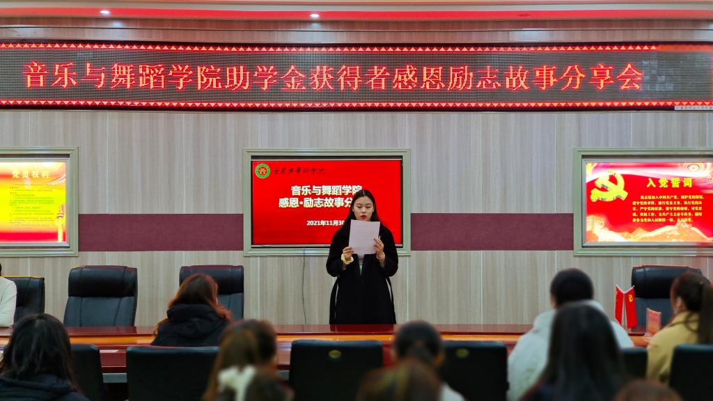 随后,来自2018级国家奖学金获得者、学校老员工自强之星候选人奚笑燕、2019级国家励志奖学金获得者谢趁、2020级国家励志奖学金获得者郝偲羽分别分享了他们的实践经历、励志故事和经验建议,鼓励2021级新生立远大目标,积累实践经验,不断开拓进取,全方位提高综合素质。2021级受助代表骆倩分享了自己受助后的感受和体会。