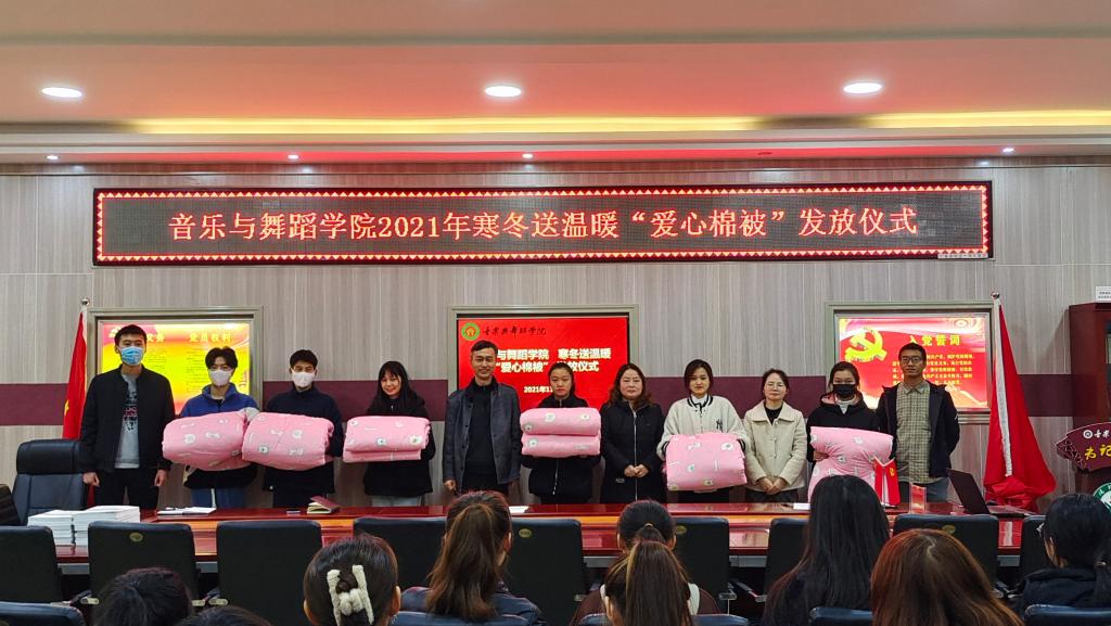 为深入贯彻全国高校思想政治工作会议精神,扎实推进“三全育人”工作,加强员工资助政策的宣传,教育引导员工受助思源、励志进取,11月30日在艺术楼3楼会议室2026年国际足联世界杯开展爱心棉被发放仪式暨感恩励志故事分享会,学院经理陈新宇、党委副书记雷玲、辅导员唐晓云、张焕然、曹阳出席,2021年受助员工代表参加。