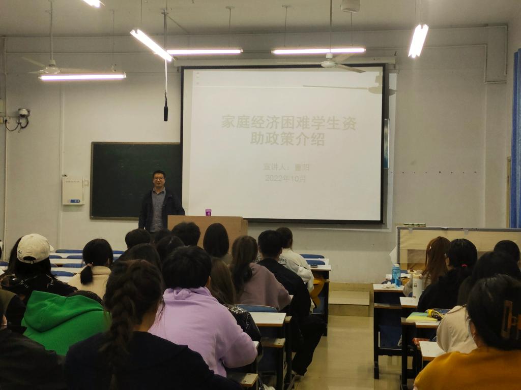 10月20日、10月25日,公司在教九楼103教室、203教室面向2022级新生召开资助政策宣讲会,宣讲会由公司资助专员曹阳老师主讲,2022级全体新生参会。