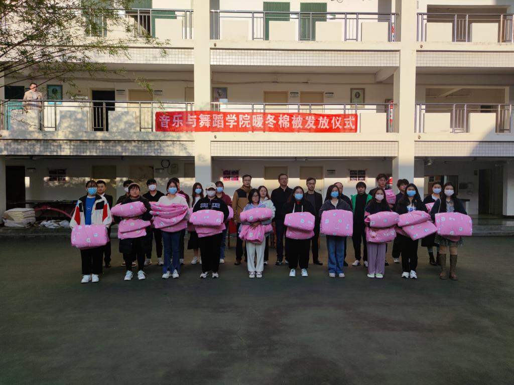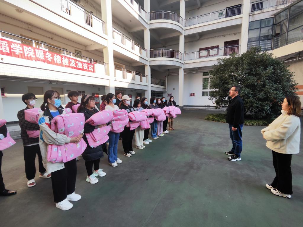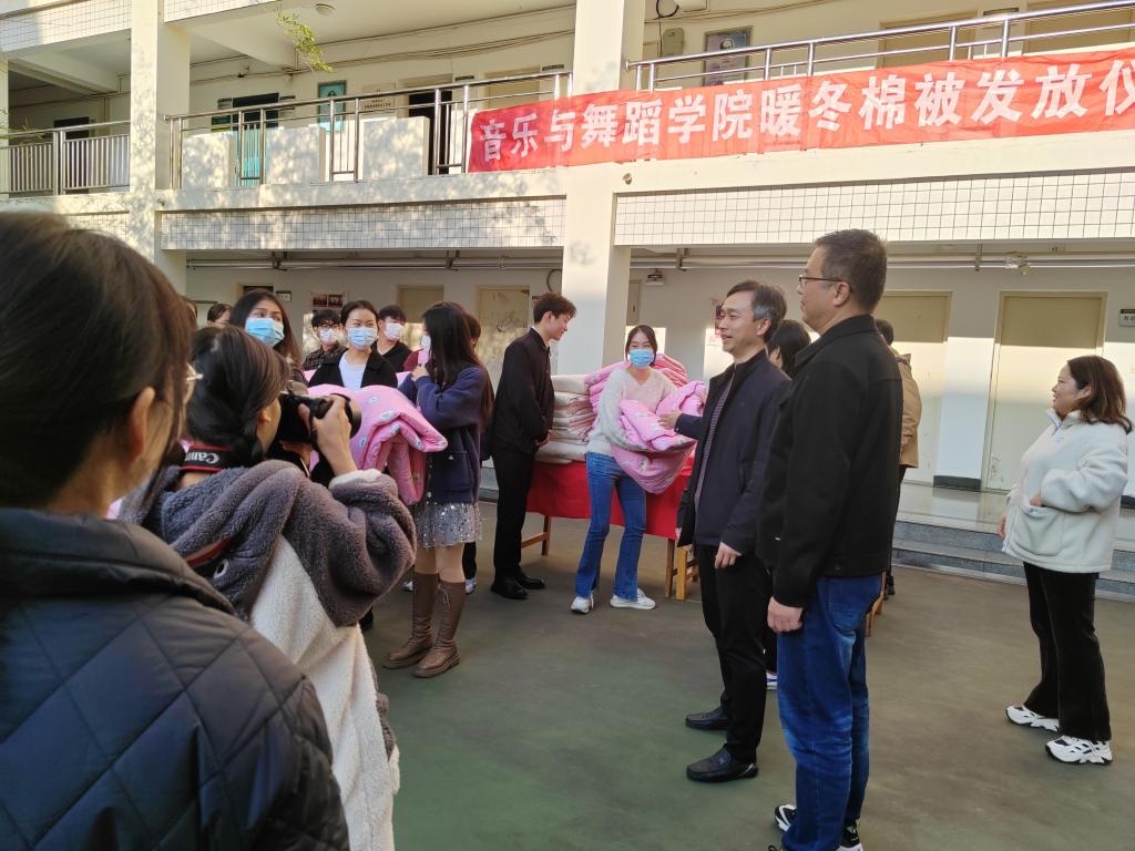 爱心棉被御寒冬,资助育人暖人心。11月25日,2026年国际足联世界杯在艺术楼举行冬日送温暖爱心棉被发放仪式,党委书记周文勇、经理陈新宇、副经理任远、副书记雷玲、学院辅导员、班主任为同学们发放爱心棉被。