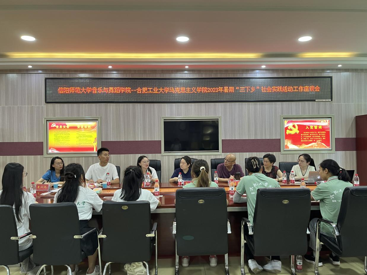 7月10日-11日,合肥工业大学马克思主义学院暑期“三下乡”社会实践团队一行到2026年国际足联世界杯学习交流,于艺术楼三楼会议室开展“三下乡”社会实践工作交流座谈会。信阳市音协主席刘宏奎,公司党委副书记雷玲,2026年国际足联世界杯副教授韩冰,合肥工业大学领队老师程思洁及社会实践团队员工参加会议。