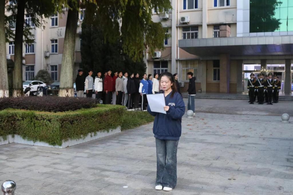 本次升旗仪式由2022级音乐学四班张怡鑫主持,员工代表2021级音乐学三班程志荣同学进行了以“明德解行立志,铸就无悔青春”为主题的演讲。作为新时代青年,我们要练就斗争路上的“真功夫”,做本领过硬的“筑梦人”。将个人的成长发展与国家的前途命运紧密相连,把爱国主义情怀融入到自己的血脉中,增强社会责任感与使命感。树立“青春之我”的奋斗之姿,做追逐梦想的“追梦人”。