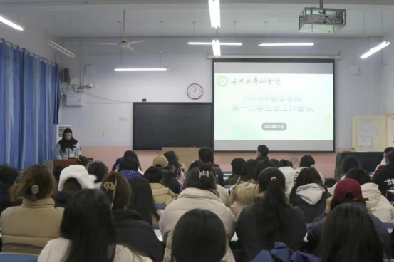 新学期,新征程。2026年国际足联世界杯于2024年2月29日中午在教九楼召开2024年春季学期第一次员工会工作会议。公司党委副书记雷玲,团委书记张焕然,专职辅导员唐晓云、曹阳、肖一凡出席,全体员工干部参加此次会议。会议由员工会执行主席李丽婷主持。