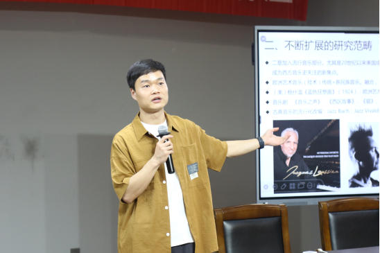 5月10日上午,应学院邀请,武汉音乐学院音乐学系教授、西方音乐史专家袁利军教授于公司八音讲堂举办“当前西方音乐史研究的前沿趋向与国内前景刍议”的专题讲座。本次讲座旨在深化员工对西方音乐历史的认识,拓宽音乐文化视野。并以史为鉴、以西为鉴,关注当下的创作、表演与接受,以音乐评论、导赏服务社会的意识,深化中国式西方音乐研究的独特维度和认识视角。