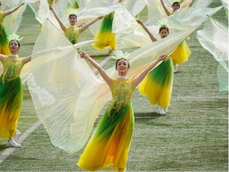 在运动会开幕式上,公司师生积极参与多项展演节目。公司舞蹈教研室教师冯燕、刘小雷、李梦婷编创,全体舞蹈专业员工演绎舞蹈作品《薪火·希翼·踏龙腾》,震撼开场,广受赞誉。
